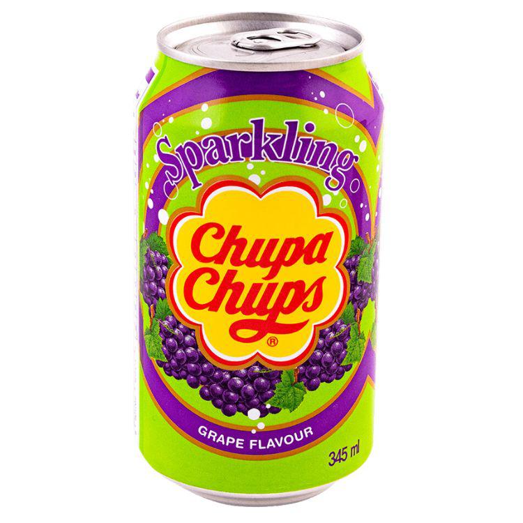 Grape flavor. Chupa Chups Sparkling Soda is a refreshing and effervescent carbonated drink that is perfect for those who love a fruity and bubbly beverage. This sparkling soda is produced by the well-known confectionery brand, Chupa Chups, which is famous for its lollipops.