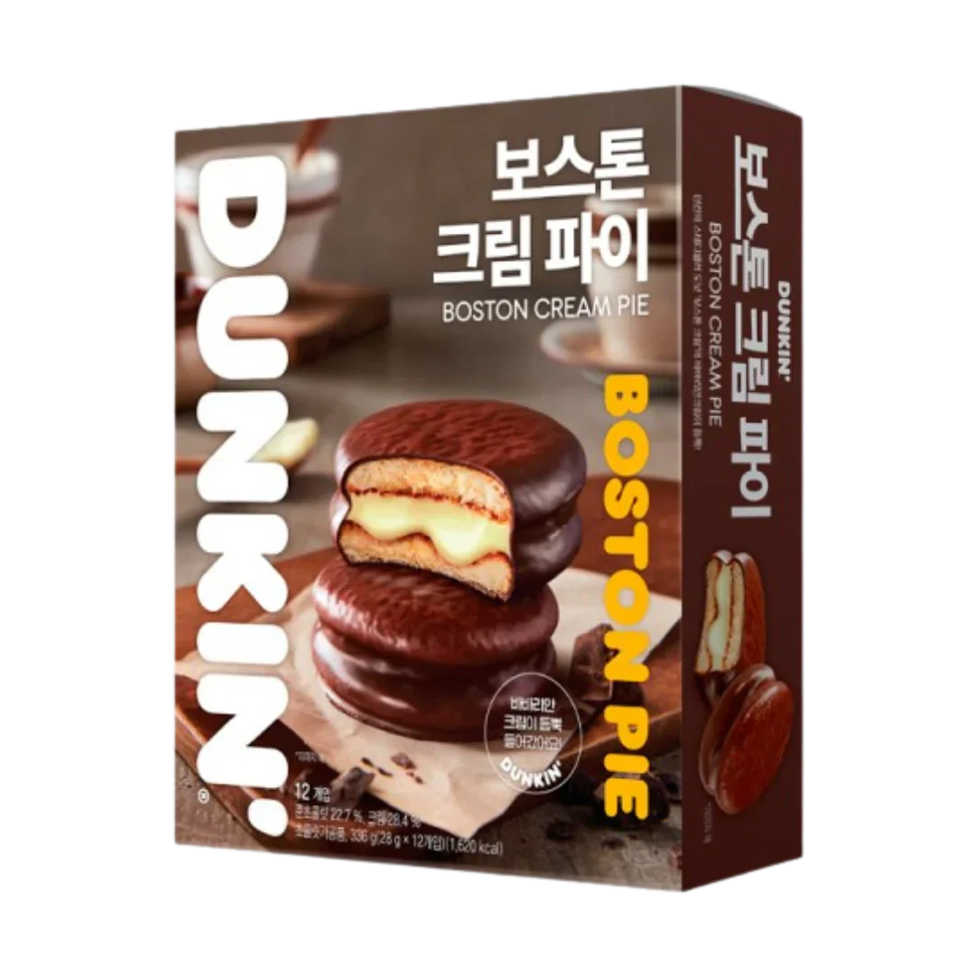 Introducing Dunkin Boston Cream Pie (Korea) in a delightful 336g package! Get ready to embark on a flavor adventure that will transport your taste buds straight to the heart of Boston. Our delectable creation combines the rich, velvety goodness of a classic Boston Cream Pie with the unmistakable Dunkin touch.