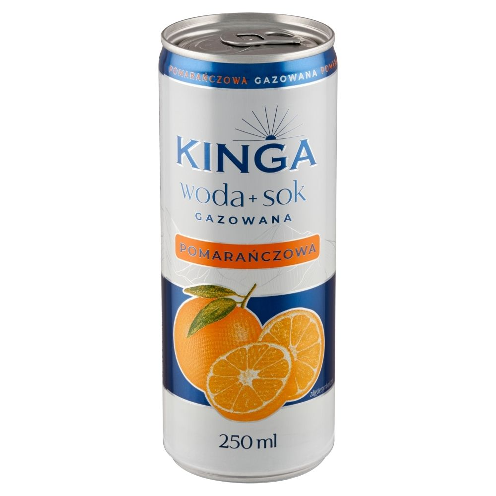 Carbonated orange-flavored drink with orange juice and apple juice.