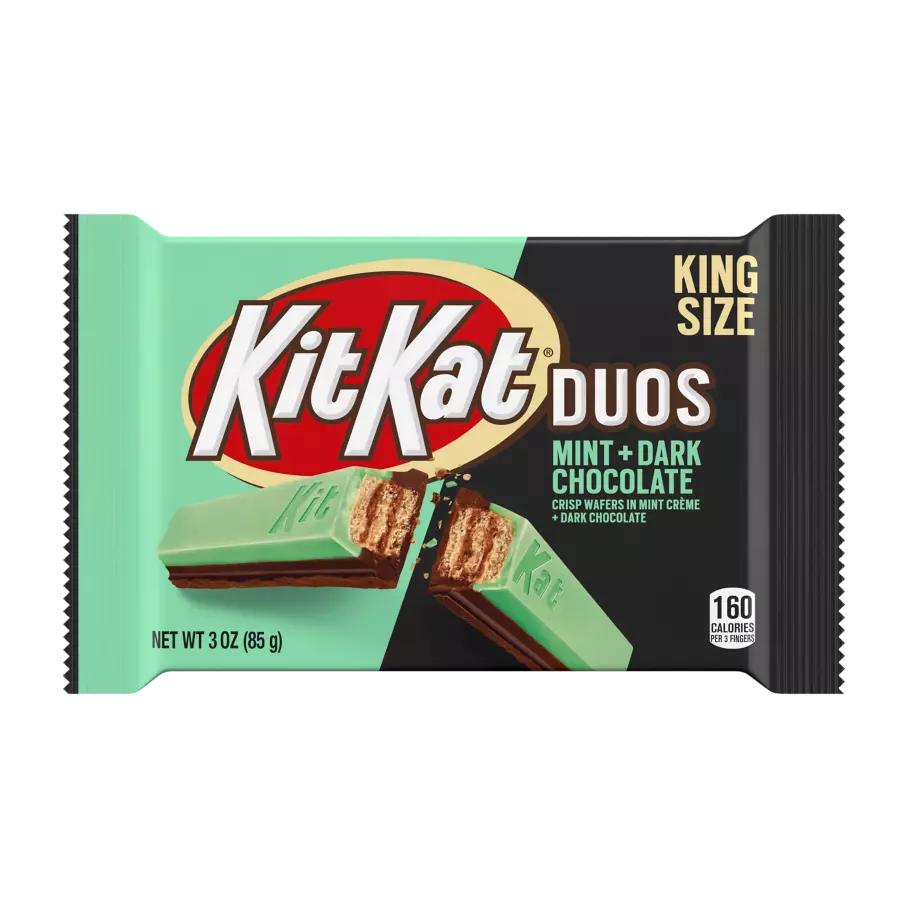 People who like mint chocolate are the coolest. For a break that’s just as cool, try KIT KAT® DUOS Mint and Dark Chocolate Candy Bars. These crisp wafers are dipped in half dark chocolate and half mint creme for an extra-delicious twist on classic KIT KAT® Bars.