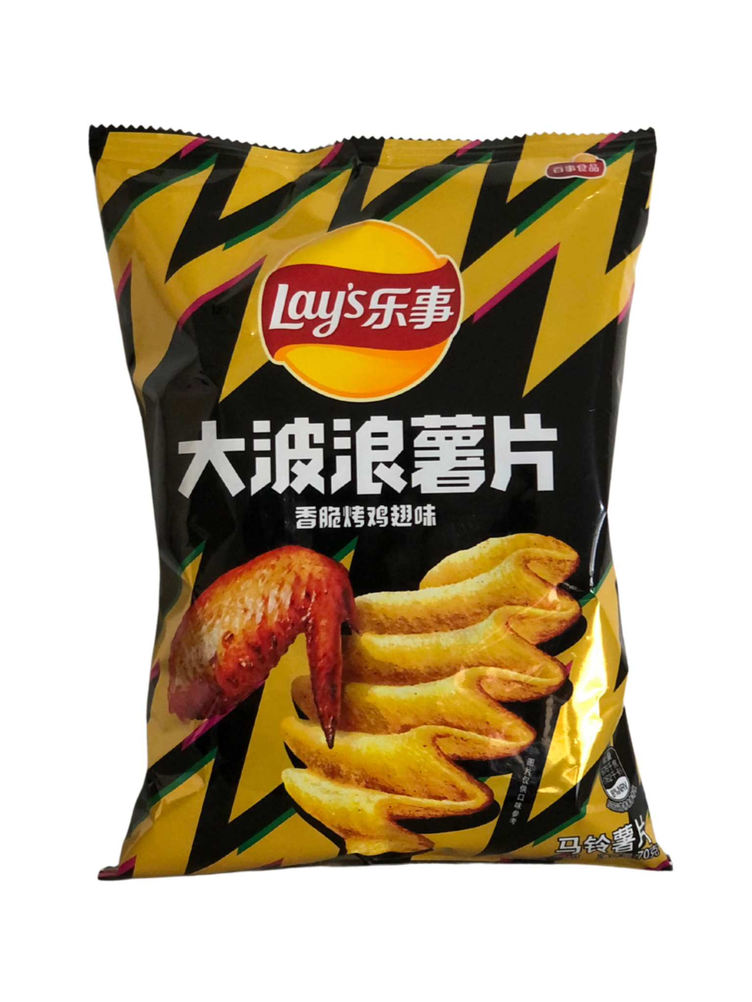 Chicken wings roasted on a BBQ grill flavor chips. Taste exactly like how it sounds. Has a nice light note of BBQ smoke aroma. Roasted chicken wing flavor Lays wave is a mouthwatering snack that is manufactured in Japan.