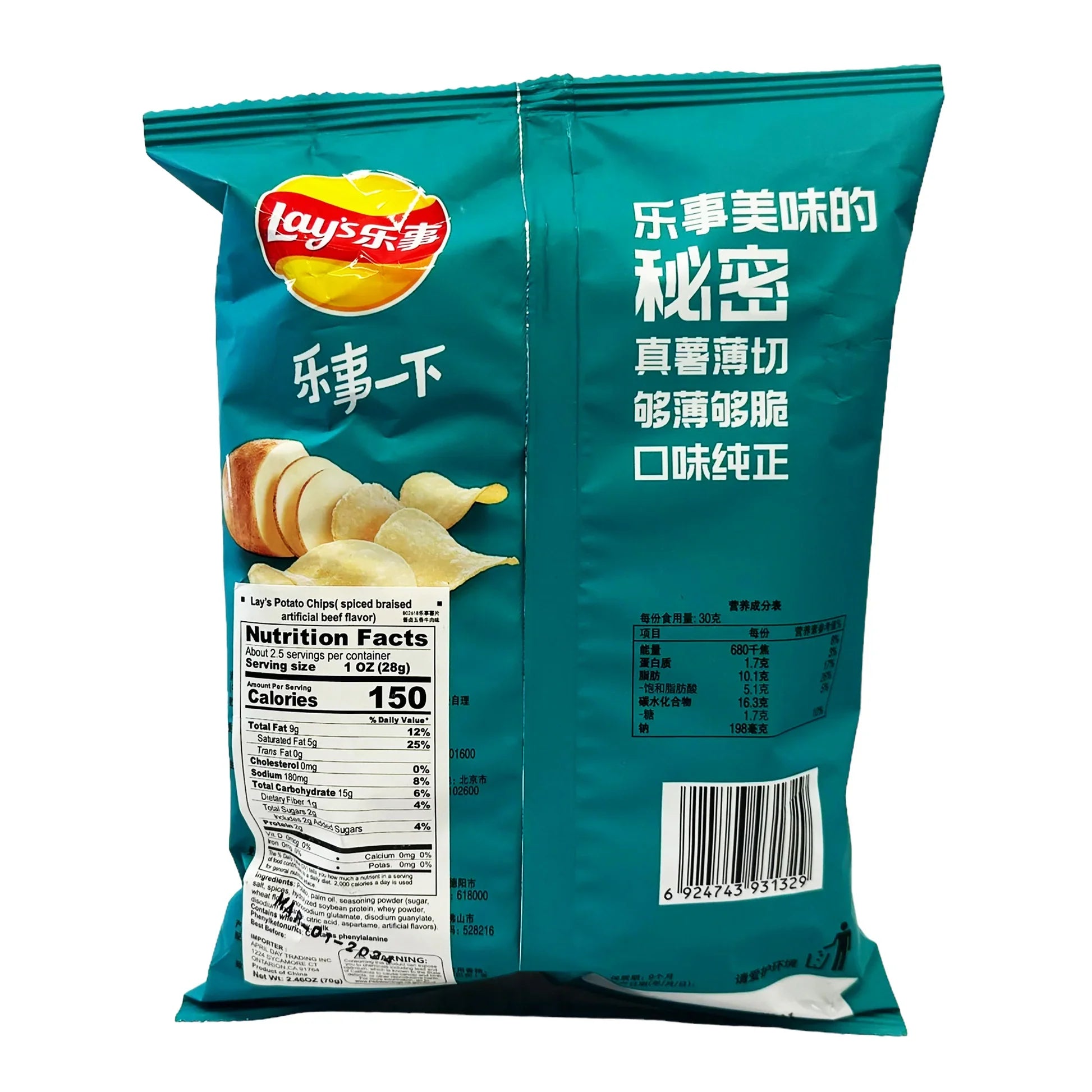 Lays Chips Spiced Braised Beef 70g (China)