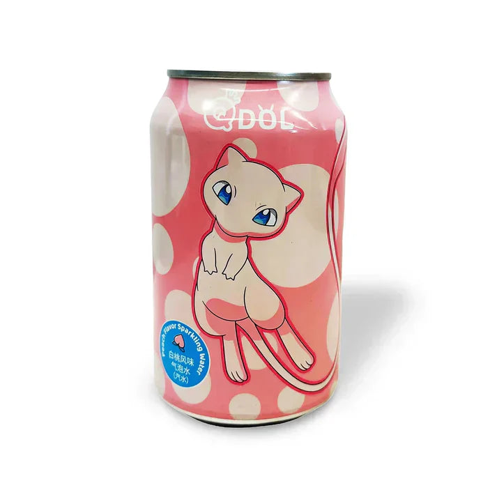 White peach flavor featuring Pokemon Mew! Cute and delicious, this Qdol carbonated soda keeps you hydrated as you go on adventures to collect them all! Try all the flavors to collect every character from the series.